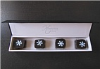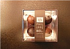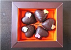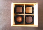 普通のプラズリンと塩キャラメル、ユズ、ロックフォールの4種