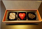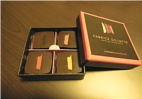 ビターチョコの中にプラリネ、ミルクチョコの中にキャラメルが入っています